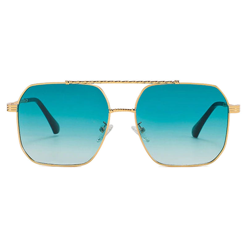 DONNY is een zonnebril met lichtblauwe glazen en heeft een gouden / gold montuur. De glazen hebben om precies te zijn een lichtblauw verloop. Deze unieke zonnebril, UV 400 bescherming is zowel voor man als vrouw geschikt. Het strakke en hoekige ontwerp zorgt voor een unieke look.
