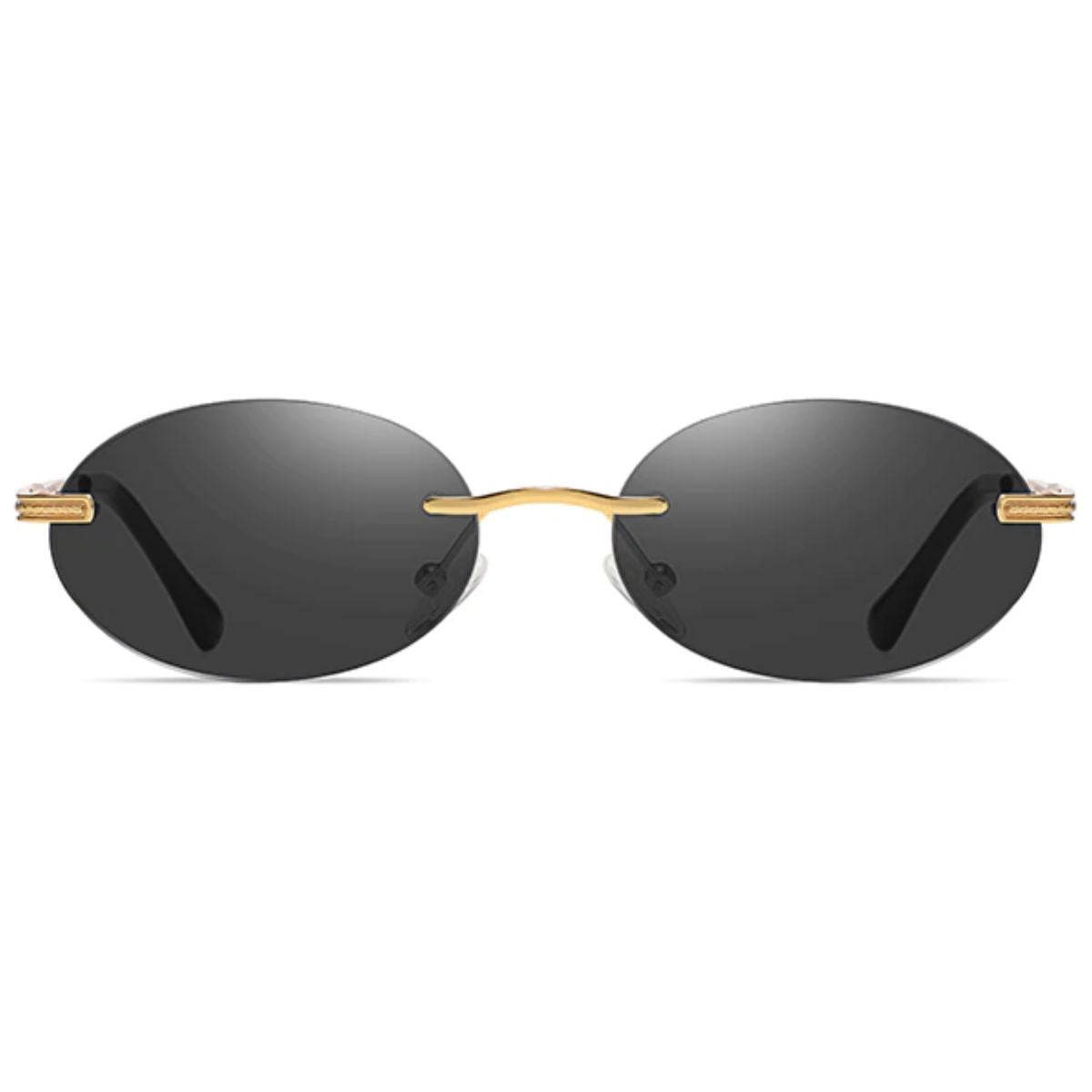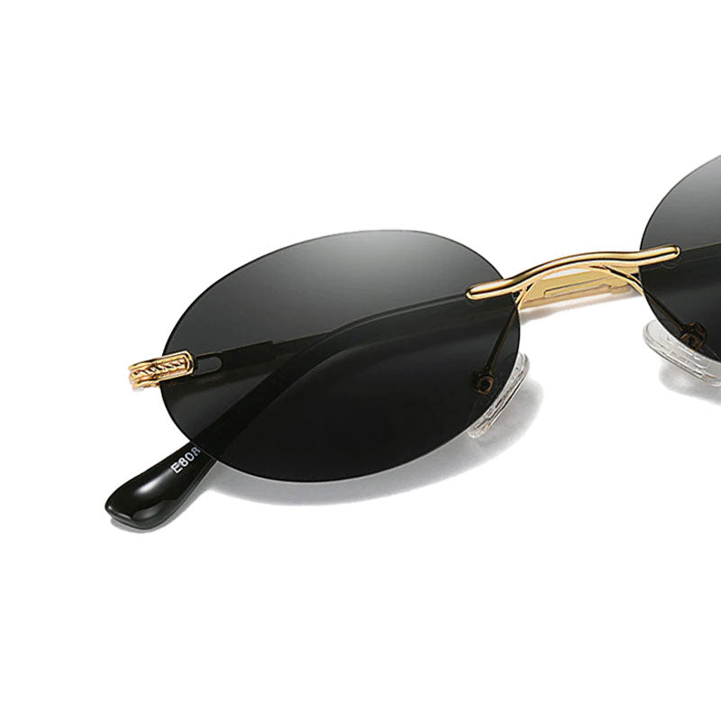 BLAZE est une paire de lunettes de soleil rondes avec des verres noirs et sans jantes sur le verre. Il a un cadre or / or. Bien que les verres soient noirs, ils sont transparents et vous pouvez voir à travers eux. Ces lunettes de soleil uniques, protection UV 400, conviennent aussi bien aux hommes qu'aux femmes.