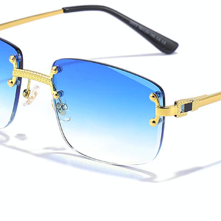 MARBELLA is een frameloze zonnebril met blauwe glazen. De glazen hebben wel een verloop waardoor het van transparant blauw naar vol blauw gaat. En het gouden / gold montuur heeft dus geen randen om het glas. Dit is echt unieke zonnebril die zeker opvalt en geschikt is voor heren als voor dames. Het ronde ontwerp zorgt voor een unieke look.
